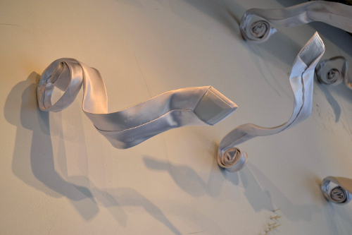 Below are images and a video from the art installation by Kris Strawser Switch. The artist has portrayed the tie in a state of being phallus. The simple silk ties have been used in an innovative way.